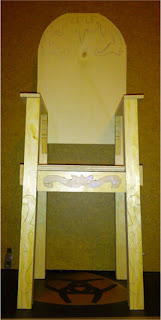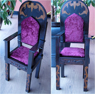 Unfortunately you can still see the two holes I made to fix two candle sockets to the back rest, but I thought they’d catch in her hair and took them off again. Despite filling an sanding the holes the palisander glaze looks slightly different from certain angles. Maybe I’ll cover them with some steampunk gears.