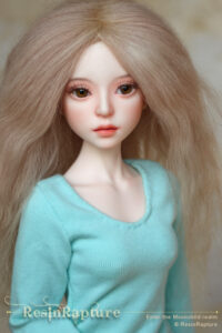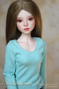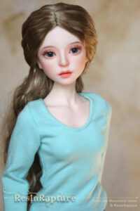 And now I need to find a wig and eyes for her. I tried several from my stash. And brown and green eyes. Her name will be Freyja, and I think she’s a quiet girl.